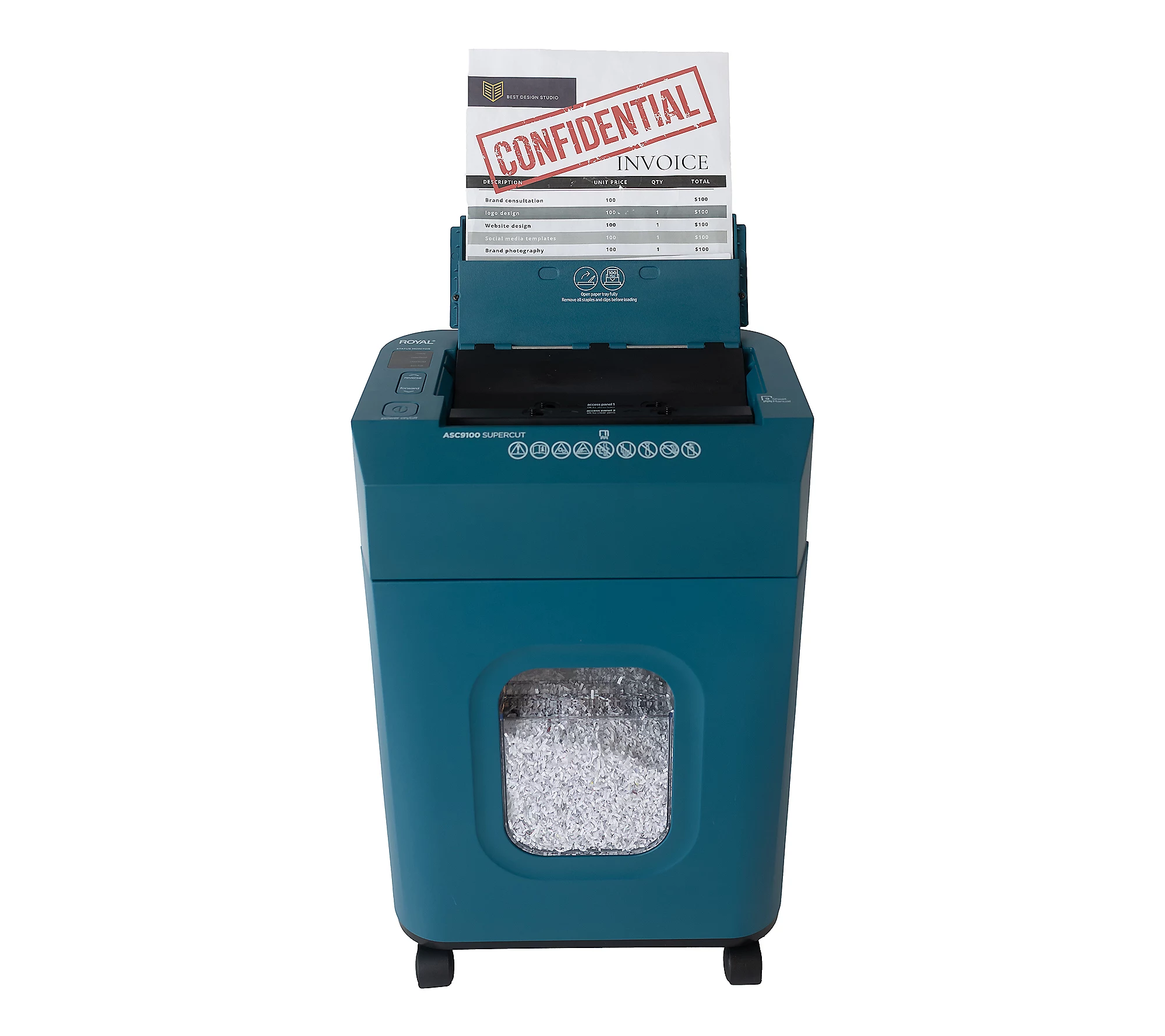 Keep your information secure with ease—Royal ASC9100 Supercut Shredder delivers high-volume, high-security shredding in a compact, portable design.