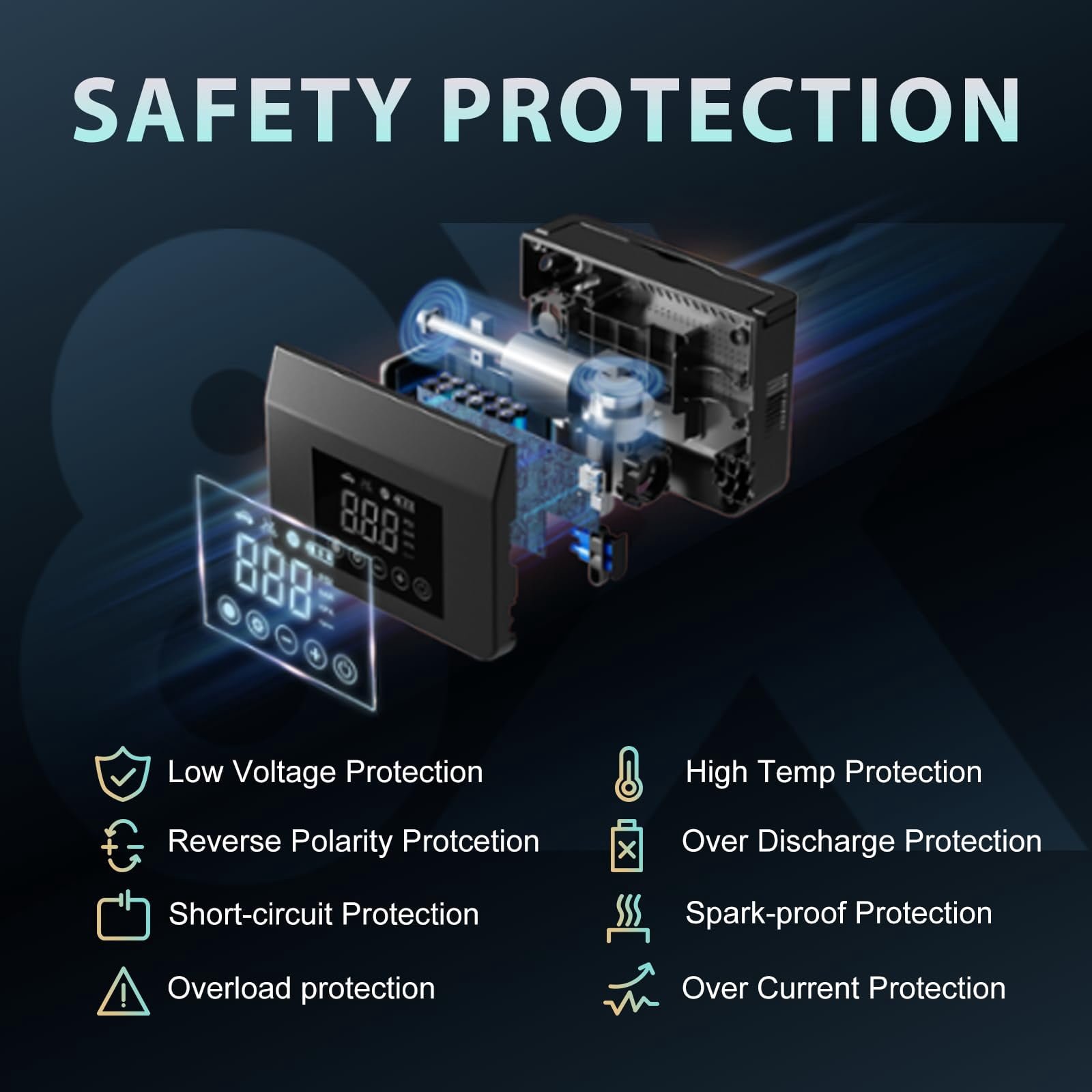 - 10-Layer Safety Protection: Features reverse polarity protection, overcharge prevention, and spark-free technology to ensure safe operation under all conditions.